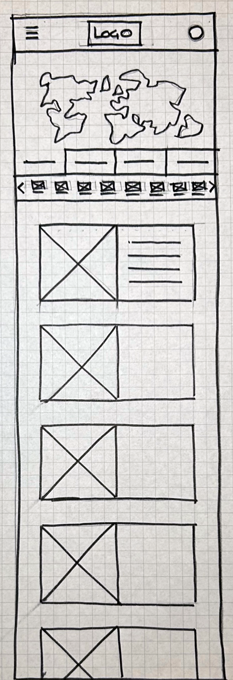 Next, I sketched out paper wireframes for each screen in my app, keeping the user's pain points about navigation, browsing, and checkout flow in mind.