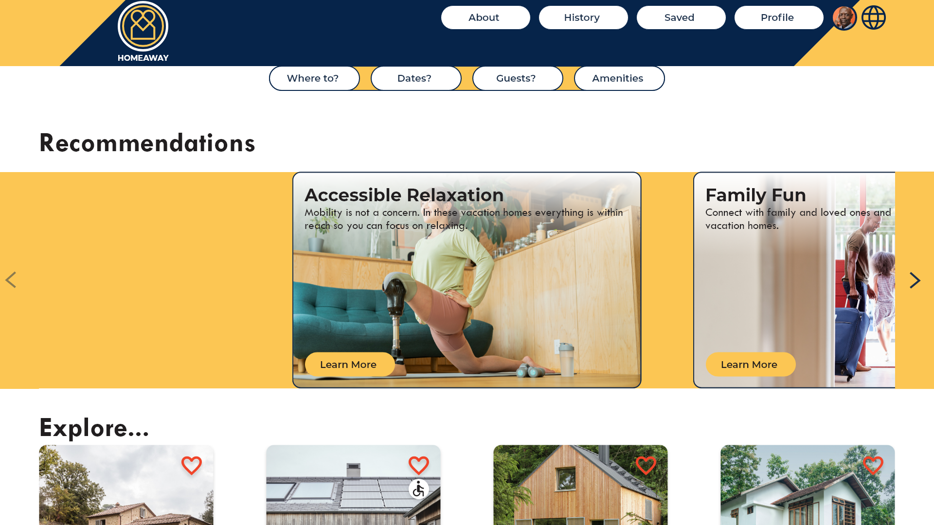 Current vacation home rental websites seldom prioritize vacation homes for large groups, extended families, and people with disabilities. Users often have to spend more time trying to find exactly what they are searching for, and suggestions often don’t align with the actual needs of the target user group.